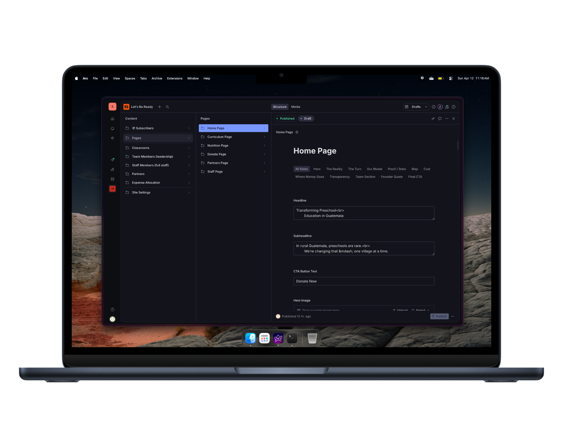 Website and CMS for a nonprofit running preschools in Guatemala.